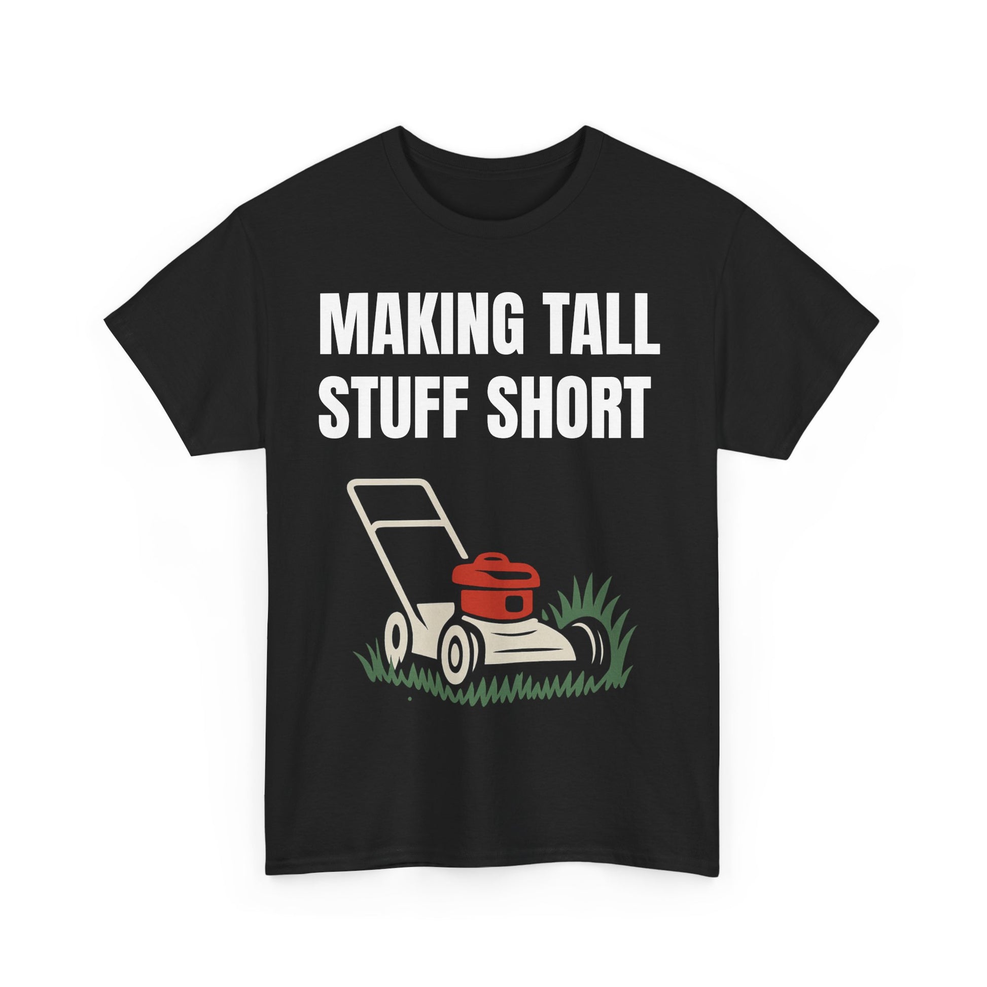 This one’s for the grass slayers, the line stripers, the weekend warriors, and the pros who live for that freshly cut look. The “Making Tall Stuff Short” tee isn’t just funny — it’s a lifestyle.