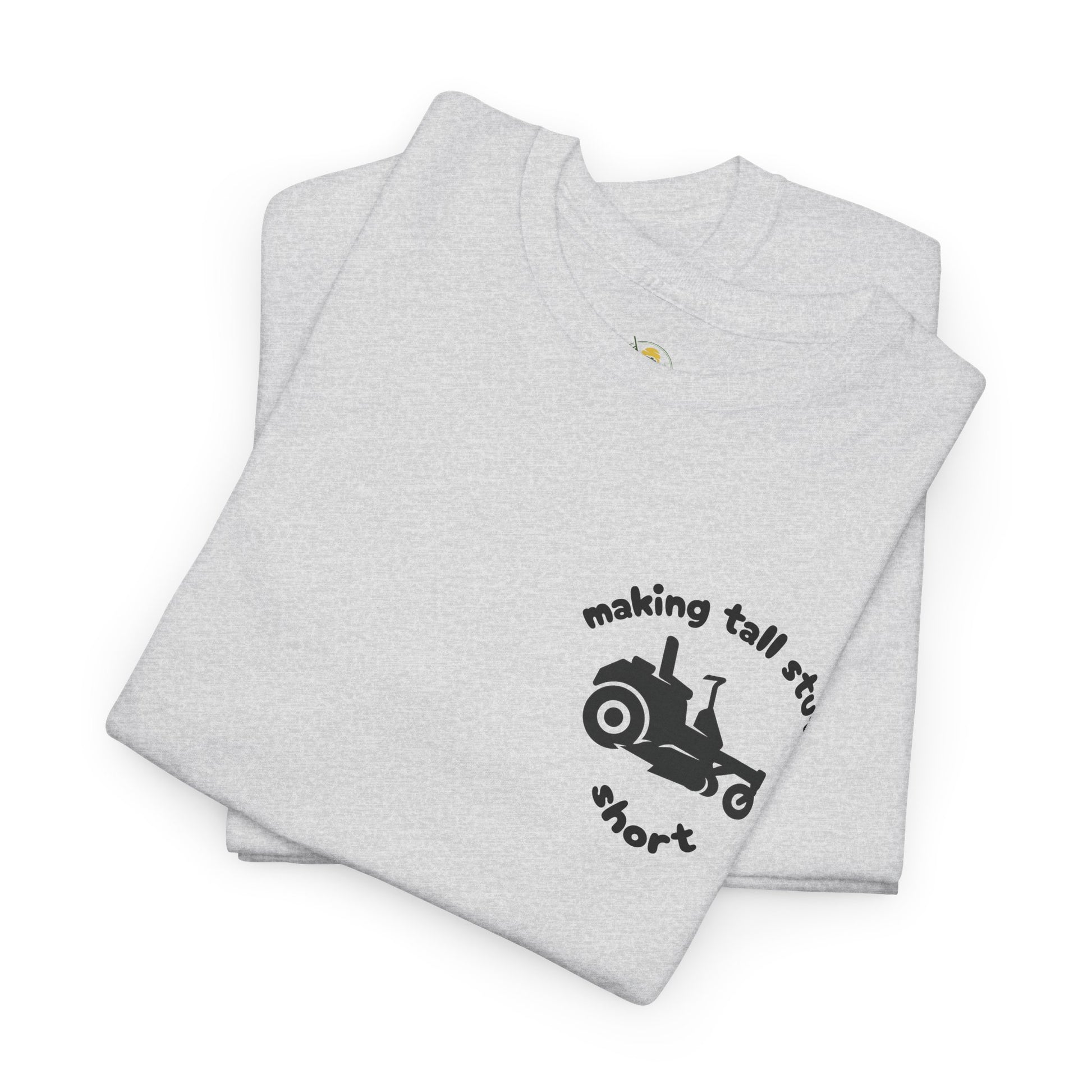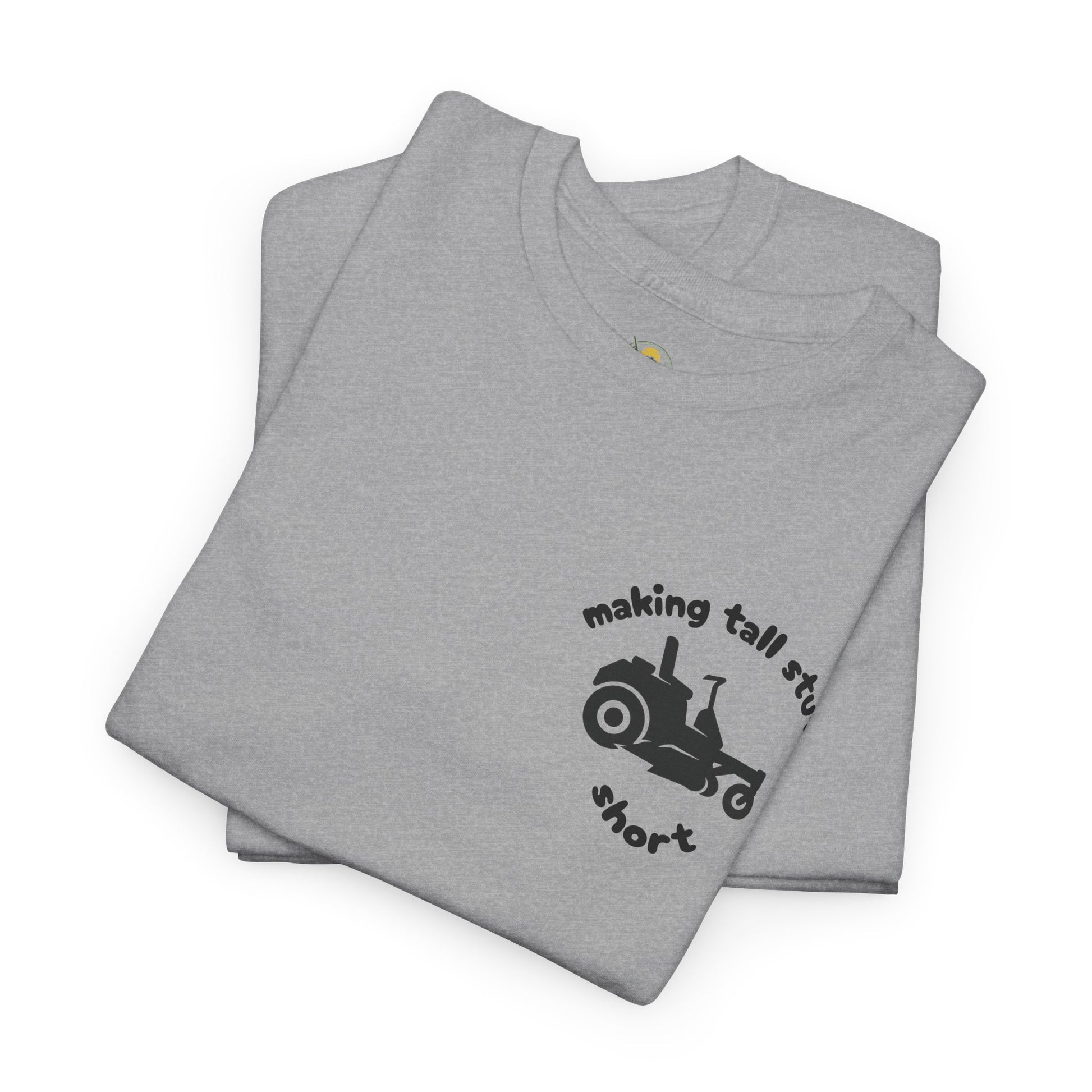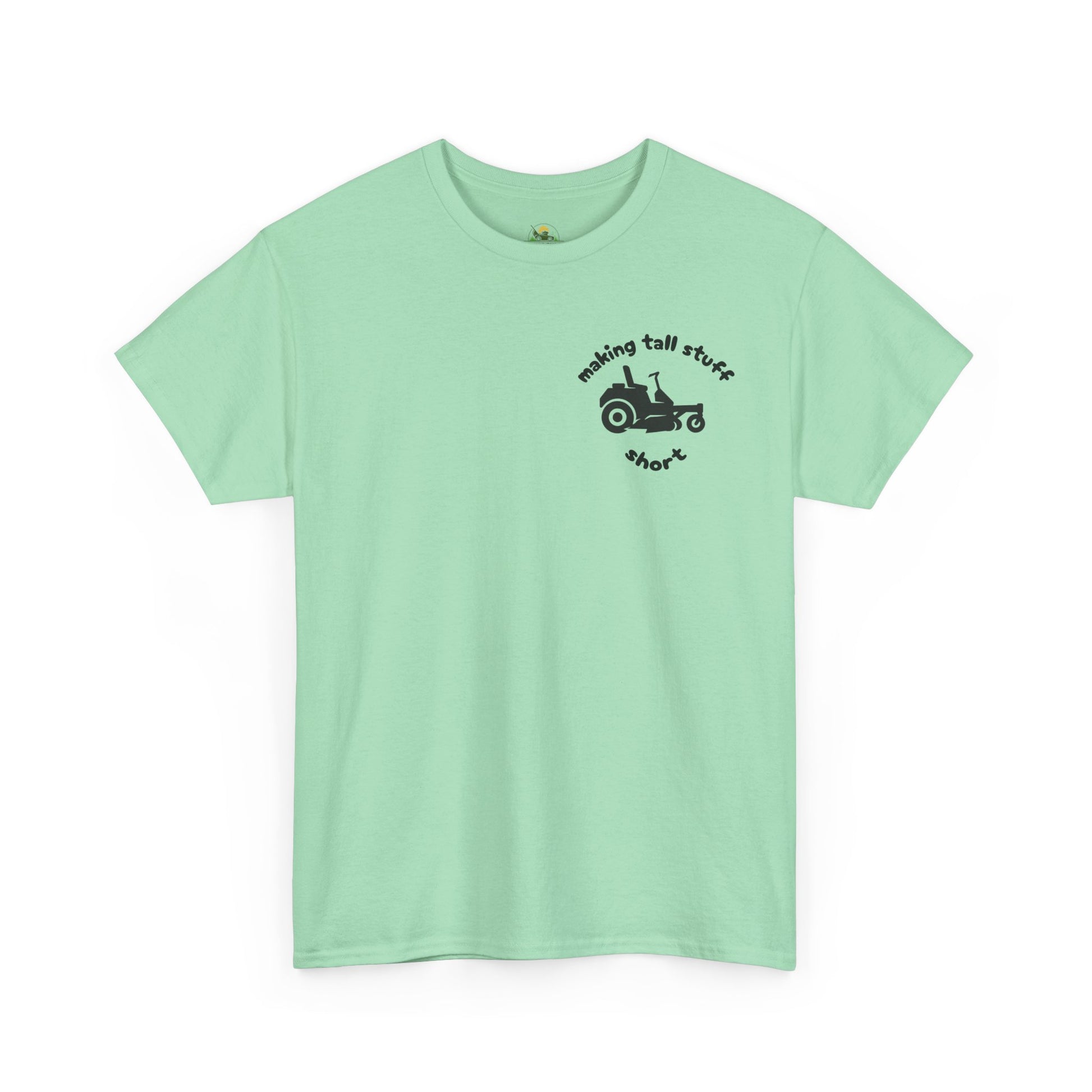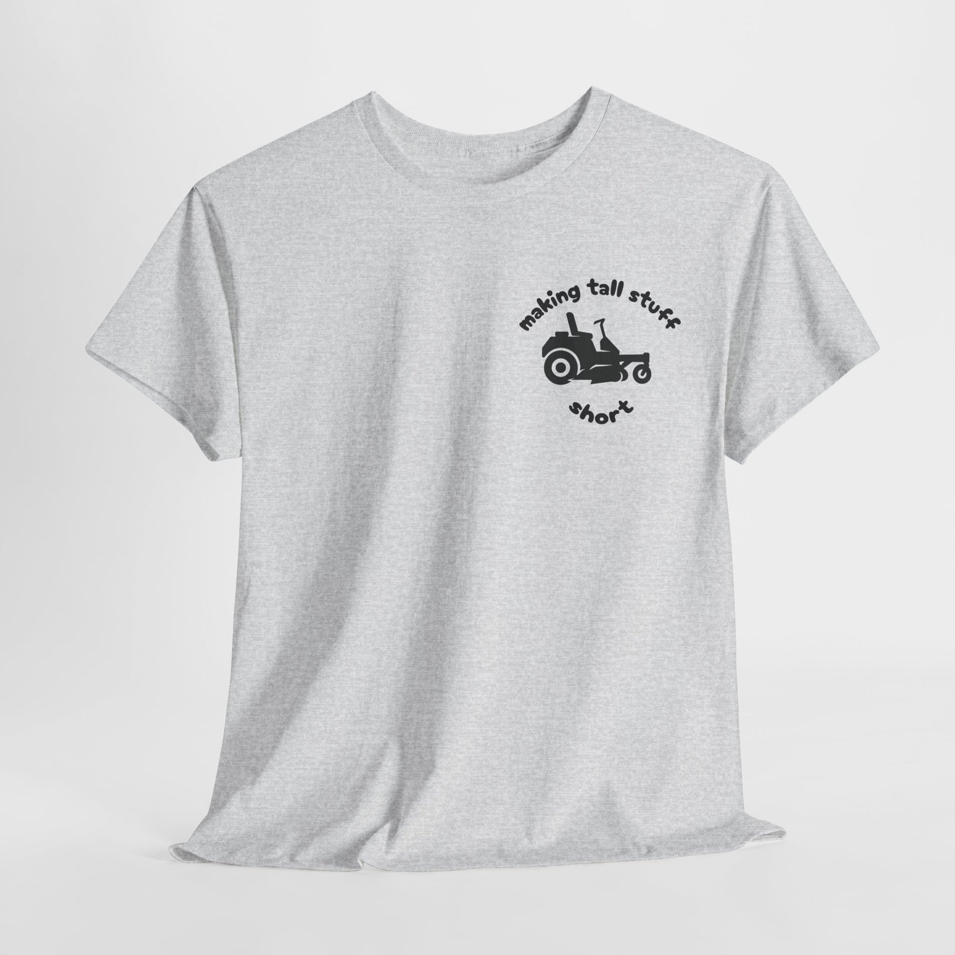 Make short work of tall grass and boring tees. Our “Making Tall Stuff Short” shirt is a witty nod to weekend warriors and mowing masters alike. Featuring a clean pocket-sized zero turn lawn mower graphic and clever slogan, this tee is built for comfort and guaranteed to get laughs. Whether you’re riding a mower or pushing buttons, this shirt’s got your back.